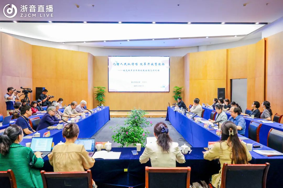 6月26日,施光南追思緬懷座談會暨專題學(xué)術(shù)研討會在學(xué)院召開。文化和旅游部藝術(shù)司副司長黃小駒、中國交響樂團(tuán)黨委書記周宇、文化藝術(shù)出版社總編輯王紅和金華市金東區(qū)宣傳部等有關(guān)部門、單位領(lǐng)導(dǎo),學(xué)院院長王瑞、副院長汪洋,洪如丁女士和家人代表,以及鄭小瑛、田青、喬建中、關(guān)牧村、佟鐵鑫、錢國楨、居其宏、梁茂春、張振濤、李詩源等眾多施光南生前好友、藝術(shù)名家大師等出席座談會。