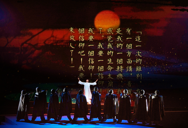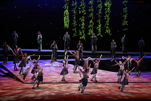 在藝術(shù)創(chuàng)作中,該劇探索突破傳統(tǒng)越劇側(cè)重“敘事”的傳統(tǒng),通過寫意浪漫的“意識流”手法,對人物內(nèi)心情感進行細膩地剖析,從而呈現(xiàn)出主人公內(nèi)心變化的張力。創(chuàng)作團隊還越劇音樂進行音樂詩化的詠嘆與渲染,探索性將交響樂團用于越劇伴奏,并將浙音音樂劇表演方向的學(xué)生納入演出團隊,運用“歌隊”形式開展多樣的敘事,從而創(chuàng)作展現(xiàn)了一部大開大合、直抒心懷、詩意盎然、美輪美奐的抒情詩劇。