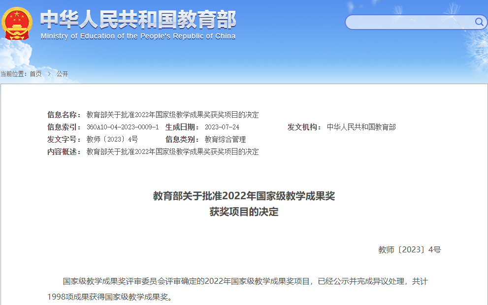 國家級教學成果獎每4年評審一次,與國家自然科學獎、技術發(fā)明獎、科學技術進步獎共同組成我國的四大國家級獎項,體現(xiàn)了黨和國家對高校教育教學工作的高度重視。國家級教學成果獎代表著全國教育教學工作當前的最高水平,是衡量中國大學教學水平、教學能力和教學質(zhì)量的重要標志,也是教育部學科評估和“雙一流”評選的重要指標之一。