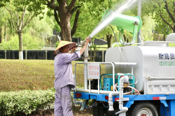 面對高溫干旱,為了確保校園花草樹木的正常生長,在新學(xué)期能以最好的狀態(tài)呈現(xiàn)在師生面前,校園內(nèi)隨處可見綠化師傅忙碌的身影。他們每天堅持澆溉養(yǎng)護,保證校園內(nèi)樹木花草的存活,提升了校園的綠化景觀效果。與此同時,后勤與校園安全處還對校園的各個角落開展了雜物清理工作,物業(yè)保潔人員堅持對校園公共區(qū)域進行打掃,保證了校園環(huán)境的優(yōu)美和舒適。