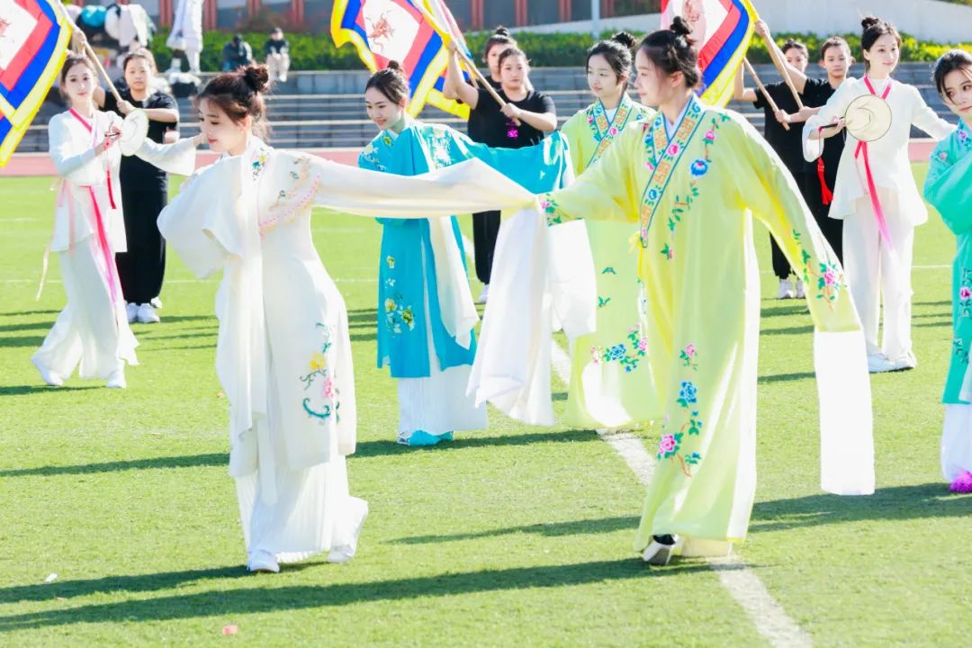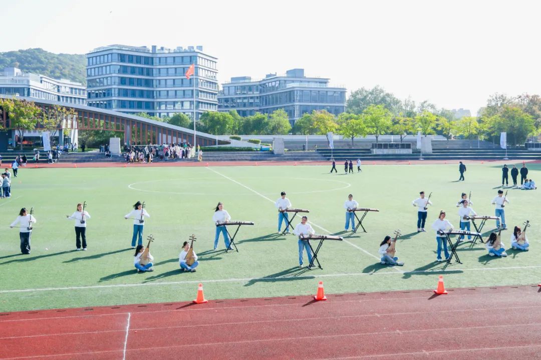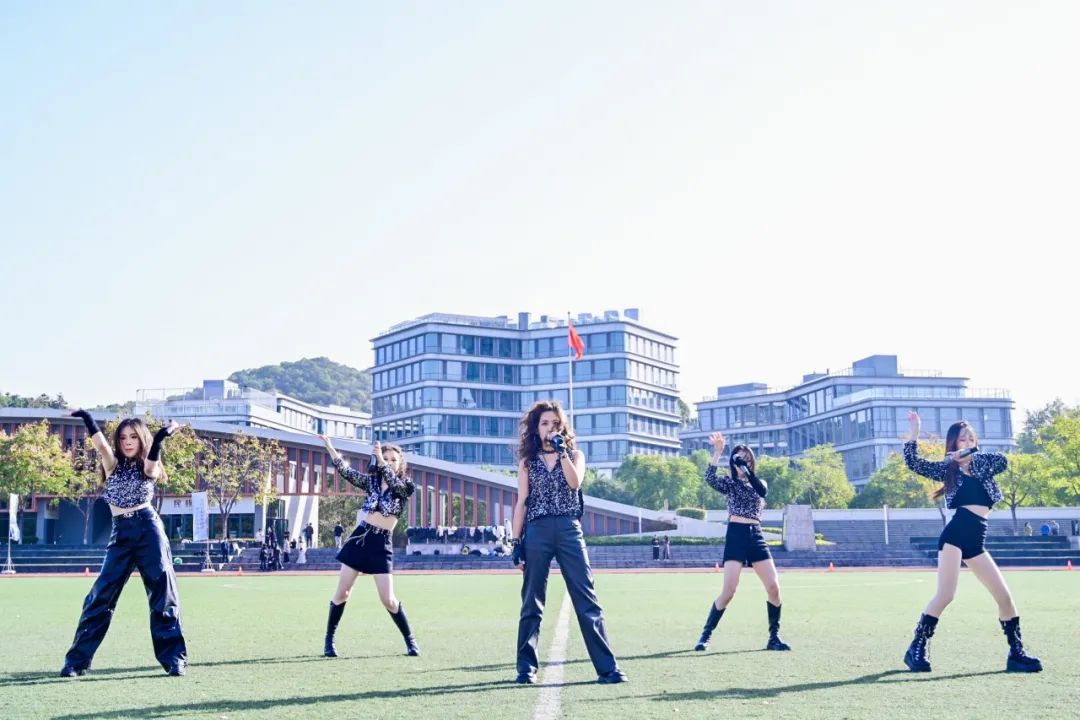 隨后,開幕式演出精彩開場。國樂系帶來了現(xiàn)代箏樂作品《星光之戀》,傳統(tǒng)古箏演奏技法與現(xiàn)代音樂元素完美結(jié)合,奏響了當(dāng)代大學(xué)生的青春節(jié)奏與勵(lì)志音符。舞蹈學(xué)院春晚原班人馬在秋日操場再跳《碇步橋》,“SaSa”女孩們重現(xiàn)經(jīng)典,帶我們走入溪水淙淙的詩畫江南。流行音樂系帶來唱跳作品《無盡之羽》和流行演奏《Kyddo(奇多)》,充滿律動(dòng)又個(gè)性張揚(yáng)的演出,展現(xiàn)了當(dāng)代青年不懼挑戰(zhàn)、堅(jiān)持自我的澎湃激情。戲劇系帶來了風(fēng)格迥異的傳統(tǒng)越劇與歌舞《the greatest show》表演,溫婉翩然的傳統(tǒng)藝術(shù)與熱情四射的音樂劇表演高潮迭起,令人目不暇接,仿佛一場跨越時(shí)空的藝術(shù)盛宴。