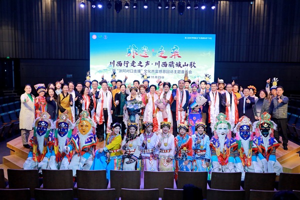 以文化交流交融為抓手,促進(jìn)各民族共同團(tuán)結(jié)進(jìn)步,是浙江對口支援阿壩的一項重要內(nèi)容。自浙江與阿壩結(jié)對幫扶以來,兩地開展全面聯(lián)動、全域共建、全時合作,舉辦了一系列文化走親、文化交流展演,以及考察學(xué)習(xí)活動。浙江音樂學(xué)院作為浙江省唯一的本科類音樂藝術(shù)院校,積極發(fā)揮學(xué)科專業(yè)和人才優(yōu)勢,以音樂文化交流合作為抓手,開展了系列文化聯(lián)動、藝術(shù)賦能、音樂幫扶等活動,有效增強(qiáng)了兩地“東西結(jié)對、山海結(jié)盟、藏漢結(jié)親、羌漢結(jié)義”的深情厚誼,推動了兩地文化建設(shè)和文藝繁榮發(fā)展。