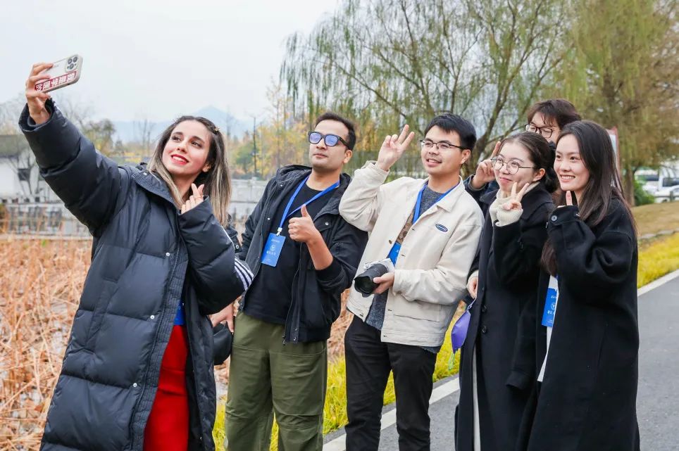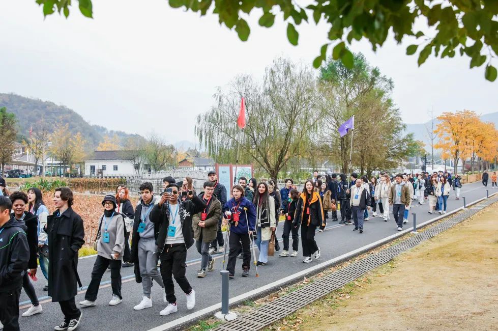 來自浙江大學(xué)、中國美術(shù)學(xué)院、浙江工業(yè)大學(xué)、杭州電子科技大學(xué)、浙江工商大學(xué)、浙江中醫(yī)藥大學(xué)、浙江農(nóng)林大學(xué)、浙江科技學(xué)院、杭州師范大學(xué)、浙江音樂學(xué)院省內(nèi)10所高校、59個(gè)國家(地區(qū))的250余名外國留學(xué)生集體打卡“最美鄉(xiāng)村”,以音樂為媒,圍繞“兩山理念、美麗鄉(xiāng)村、共同富裕”核心主題,通過他們的視角開展國際傳播,唱響美麗鄉(xiāng)村。