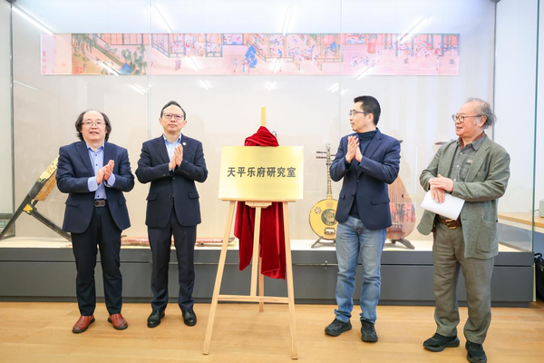 論壇開(kāi)幕式之后還舉辦了“天平樂(lè)府研究室”揭牌儀式,王瑞、汪洋、圖書(shū)館負(fù)責(zé)人與學(xué)院特聘研究員劉宏軍共同為研究室揭牌。該研究室展出了劉宏軍多年來(lái)復(fù)制、收藏的我國(guó)唐傳日本的樂(lè)器、樂(lè)譜、歌舞圖卷、面具等藏品,具有較高的資料價(jià)值。