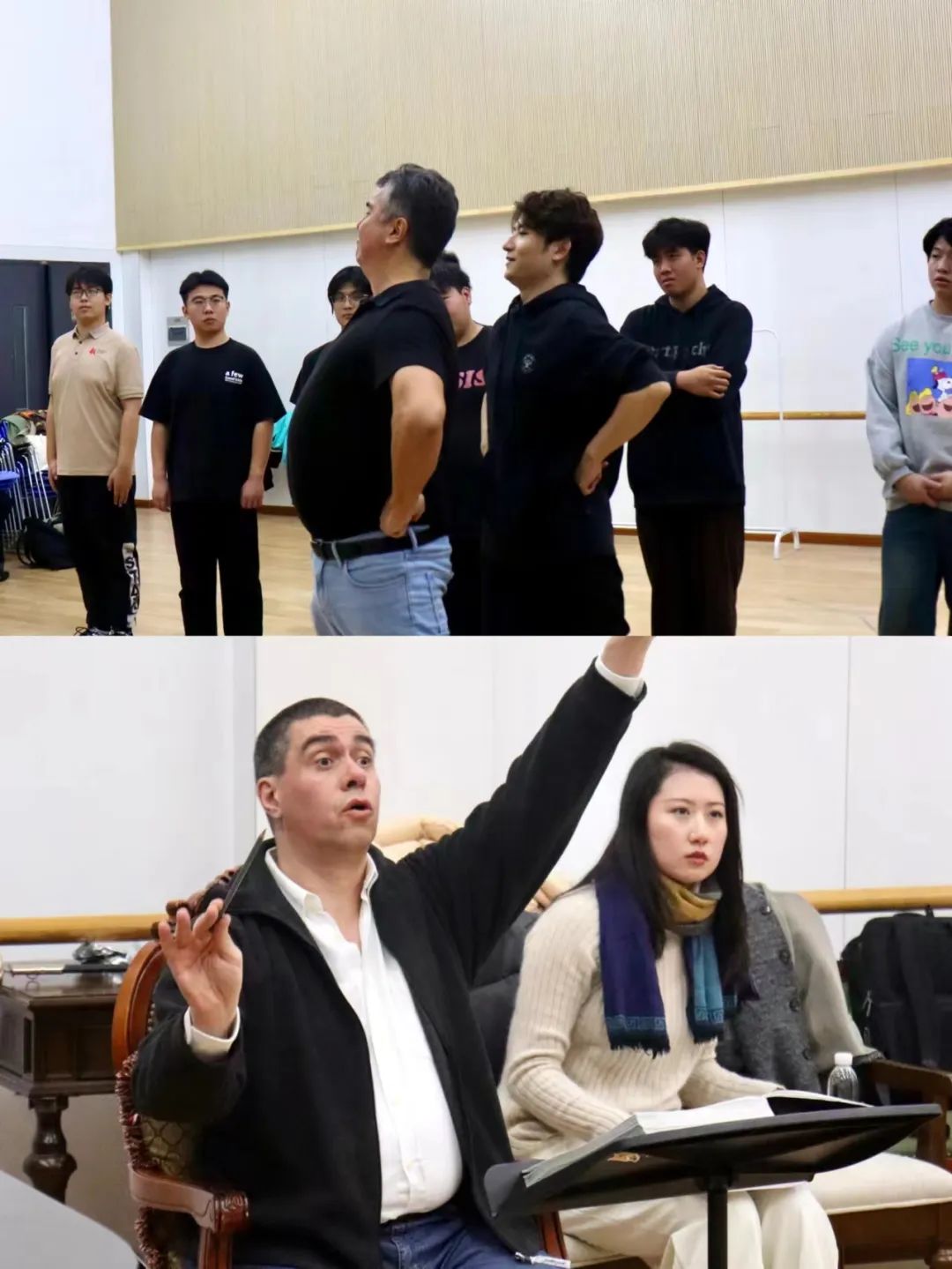 “今年上半年,我們曾和馬埃斯特里尼導(dǎo)演、阿爾伯丁指揮,為學(xué)生們排演過音樂會版歌劇《唐·帕斯夸萊》《丑角》。而這次是更為全面的展示,因此在創(chuàng)排時也打磨得更加仔細(xì)。”浙江音樂學(xué)院歌劇學(xué)院藝術(shù)總監(jiān)孫秀葦介紹,導(dǎo)演馬埃斯特里尼對整部作品的每一處細(xì)節(jié)都了熟于心,在排練時不僅會為學(xué)生一遍遍耐心講解,而且所有的示范都是親自演唱,“導(dǎo)演在這部劇里巧妙融入了許多詼諧幽默的元素,我們在排練時都時常忍俊不禁。”