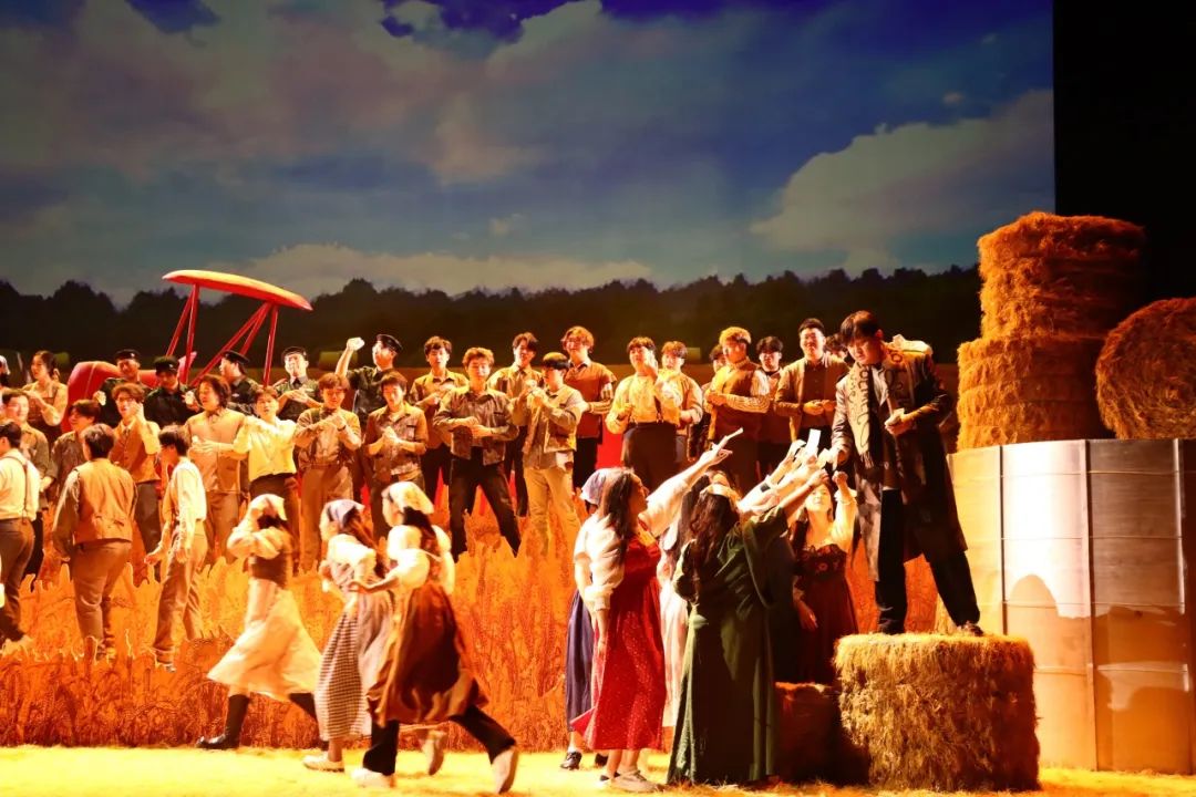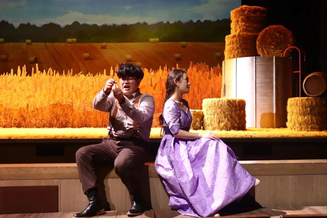 極富浪漫情懷的舞美設(shè)計也是這部劇引人入勝之處。此次特邀國家大劇院舞美設(shè)計師劉嶄擔(dān)任舞臺設(shè)計。曾在意大利深造四年的她,以其獨到的藝術(shù)審美設(shè)計了故事場景。舞臺之上的托斯卡納田園堆放著高高的麥秸垛,村外環(huán)繞著金色的麥田,將觀眾帶入19世紀(jì)意大利鄉(xiāng)村的恬靜一隅。
