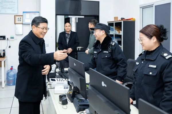 干武東一行走訪了行政樓監(jiān)控室、東1門崗?fù)?、國際交流中心、體育館高配房、學(xué)生公寓6號樓值班室、南門崗?fù)ひ约敖坦な程玫刃?nèi)多個重要區(qū)域。每到一處,都仔細察看各項安全設(shè)施的運行情況,聽取值班人員匯報,對他們的工作表示了肯定和贊揚,并送去春節(jié)祝福。