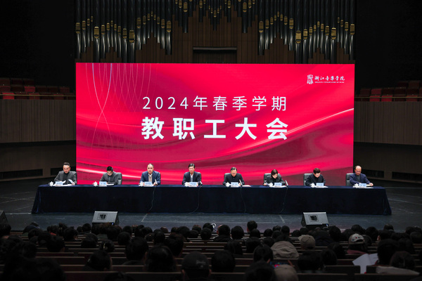 2月28日下午,浙江音樂學院2024年春季學期教職工大會在音樂廳舉行。會議傳達省委“新春第一會”精神,回顧總結(jié)2023年主要工作,部署安排2024年重點工作,表彰2023年度先進集體和個人。學院黨委書記干武東、院長王瑞分別講話,學院黨政領導班子全體成員參加會議。