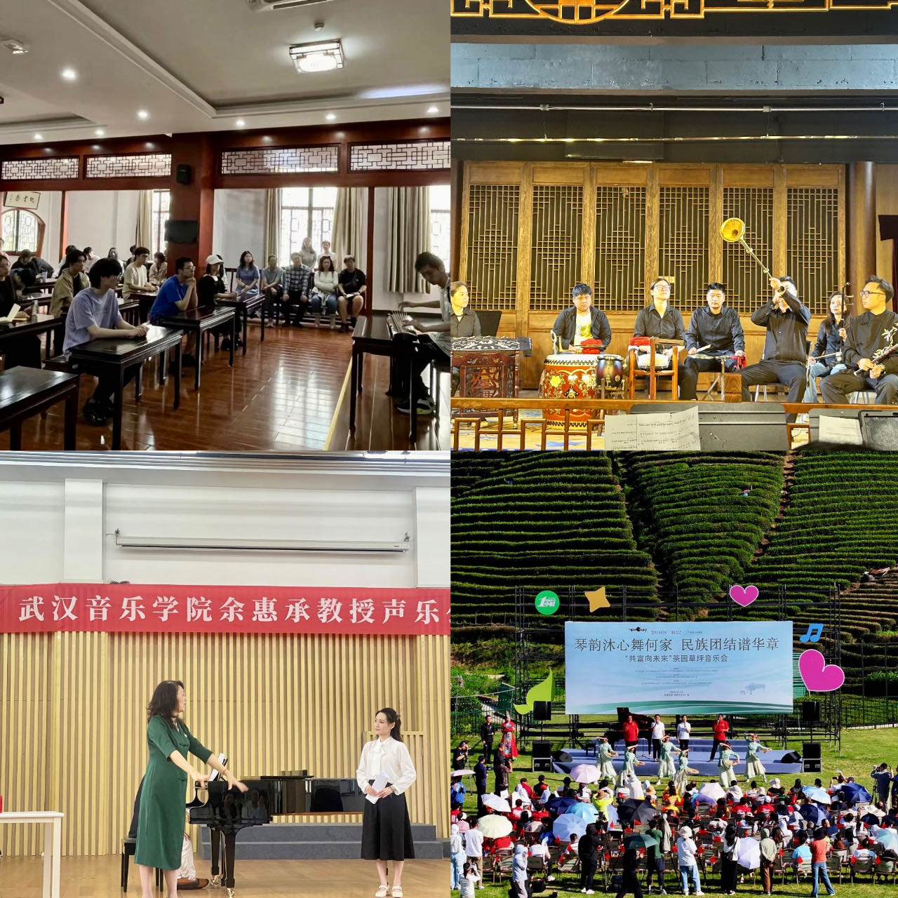 畫外桐塢,琴韻茶香。在靜謐的龍塢茶山,翠綠的茶田如畫卷般鋪展。鋼琴系學(xué)生指尖輕舞,琴聲悠揚(yáng),如泉水叮咚,與茶香交織成一幅和諧的樂(lè)章,讓人沉醉在何家村的琴韻茶香之中。