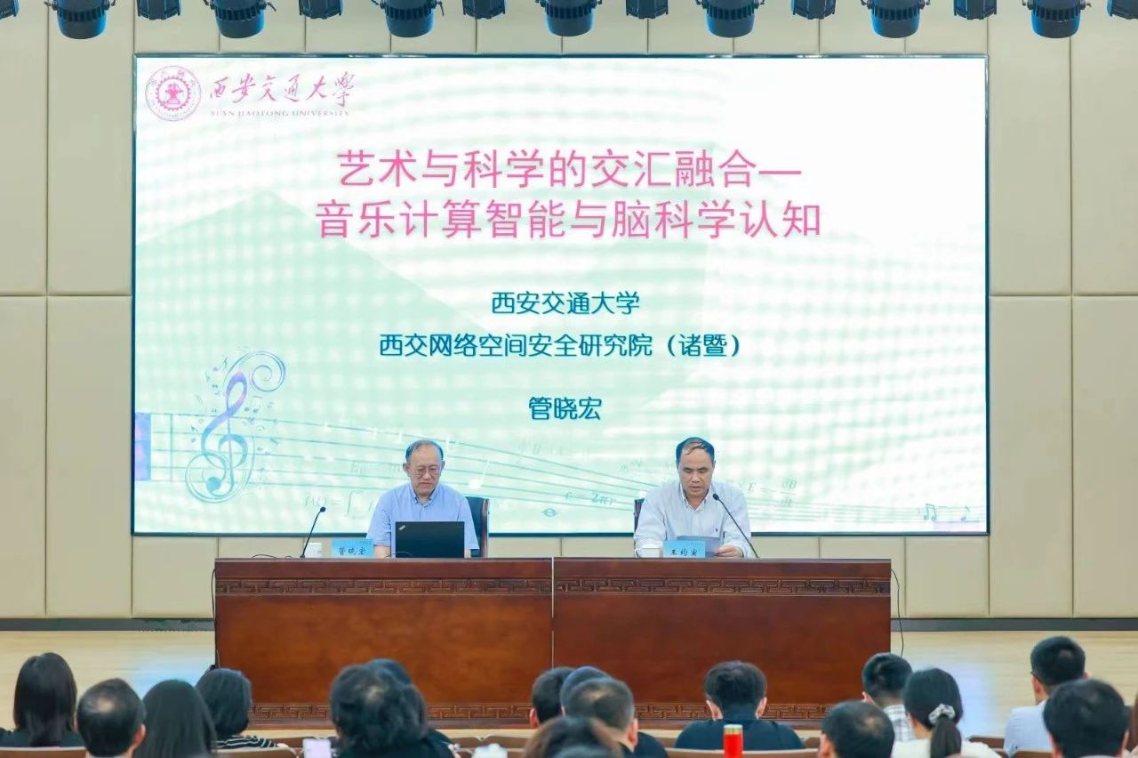 管曉宏是自動化和網(wǎng)絡(luò)安全領(lǐng)域的權(quán)威專家,長期致力于系統(tǒng)工程理論與應(yīng)用、網(wǎng)絡(luò)空間安全等研究領(lǐng)域,并在智能音樂創(chuàng)作、音樂信息處理等方面取得了顯著成果。在兩個多小時的講座中,管曉宏以其深厚的學(xué)術(shù)造詣和豐富的研究經(jīng)驗,圍繞藝術(shù)與科學(xué)的相互影響和啟發(fā),音樂的計算智能與定量模型、中國音樂定量分析與智能打譜、“藝術(shù)與科學(xué)的交匯”系列音樂會四個方面,為師生們解讀了人工智能技術(shù)如何影響和改變音樂創(chuàng)作、表演和教育的未來。