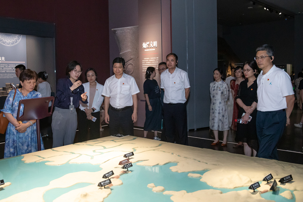 隨后,黨員干部們?cè)谡憬〔┪镳^講解員的帶領(lǐng)下,參觀了《浙江一萬年》通史陳列館。據(jù)悉,《浙江一萬年》展覽是對(duì)習(xí)總書記關(guān)于“中華民族具有百萬年的人類史、一萬年的文化史、五千多年的文明史”重要論述的生動(dòng)而經(jīng)典的詮釋,展出品類豐富、年代序列完整、極具地域特色及學(xué)術(shù)價(jià)值的珍貴歷史文物。黨員干部們?cè)谥v解員的精彩詮釋下,借由文物跨越萬年時(shí)光,“目睹”良渚文化的鼎盛、感受古越的昌明、瞻仰兩宋的輝煌、追尋紅船的足跡……以史為鑒,接受了一次生動(dòng)鮮活的黨課教育與文化熏陶。
