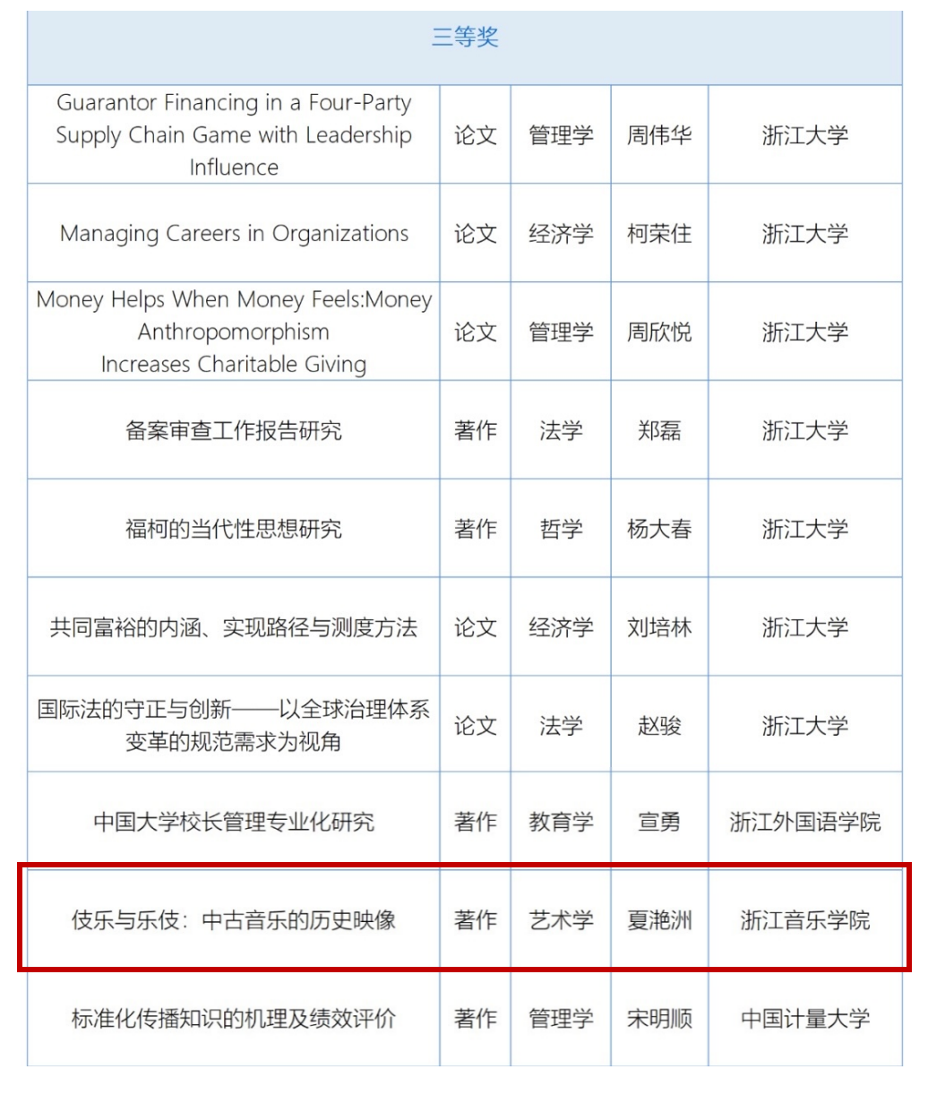 近日,教育部正式公布第九屆高等學??茖W研究優(yōu)秀成果獎(人文社會科學)評選結果,我校夏滟洲教授的著作《伎樂與樂伎:中古音樂的歷史映像》(商務印書館出版)獲著作論文獎三等獎。