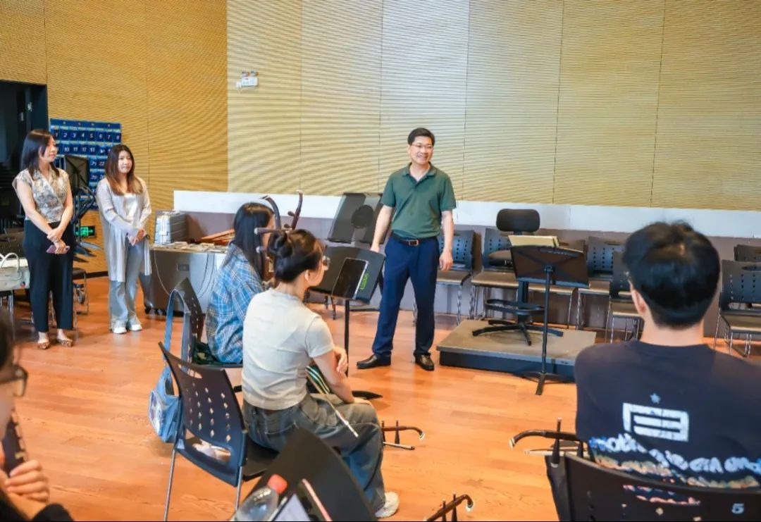 隨后,校領(lǐng)導(dǎo)看望了當(dāng)天正在學(xué)校排練的師生。干武東對(duì)師生們不畏酷暑、刻苦訓(xùn)練展現(xiàn)出的浙音精神給予了高度評(píng)價(jià),并鼓勵(lì)他們繼續(xù)努力,以飽滿(mǎn)的熱情和最佳的狀態(tài)迎接即將到來(lái)的演出和比賽。