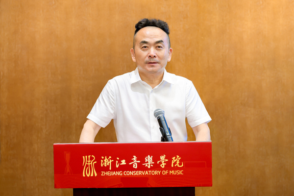 王瑞對前來參加開班儀式的領(lǐng)導(dǎo)和學(xué)員表達了誠摯歡迎,并簡要介紹了學(xué)校的辦學(xué)特色和人才培養(yǎng)情況。他表示,浙江音樂學(xué)院是一所年輕的現(xiàn)代化音樂大學(xué),自建校以來便以“新”為特征和品格,不斷探索音樂教育的新路徑,在遵循教育規(guī)律的基礎(chǔ)上,勇于開拓、積極創(chuàng)新,以“改革創(chuàng)新沒有起跑線”的創(chuàng)新力和“萬事俱備不等東風(fēng)”的行動力,建構(gòu)了“五大學(xué)院”人才培養(yǎng)新模式。“五大學(xué)院”打破學(xué)科和院系設(shè)置的界限,成立了樂隊學(xué)院、民族樂隊學(xué)院、歌劇學(xué)院、室內(nèi)樂學(xué)院和合唱學(xué)院五個新型表演學(xué)科教學(xué)平臺,整合藝術(shù)院校和專業(yè)院團的優(yōu)勢,實現(xiàn)了從教學(xué)到實踐的無縫對接,為學(xué)生提供了豐富的實踐機會,打通了人才供需鏈的“最后一公里”。本次培訓(xùn)項目是新時代高質(zhì)量、全方位的管樂藝術(shù)表演及評論人才培訓(xùn),學(xué)校將全力支持項目的實施,為學(xué)員們提供最優(yōu)質(zhì)的教學(xué)資源和最完善的服務(wù)保障,希望各位學(xué)員珍惜難得的學(xué)習(xí)機會,通過系統(tǒng)深入的學(xué)習(xí)和實踐,不僅在管樂藝術(shù)技能技法上有所提升,更在思想境界和認識上有所飛躍。