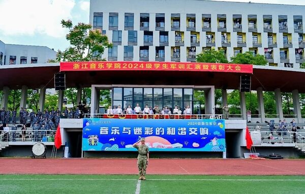 黨委副書記王均寅作總結(jié)講話,向此次承訓部隊及教官們表示衷心的感謝,向各連輔導員、班主任和負責后勤保障的同志們表示親切的慰問,向在軍訓中取得優(yōu)異成績、受到表彰的單位和個人表示熱烈的祝賀。王均寅表示,軍訓帶給同學們的寶貴經(jīng)歷,不僅是體能的鍛煉,更是意志的考驗,并對同學們提出三點希望:一是磨煉意志、追求卓越,將軍訓中培養(yǎng)出的紀律觀念、團隊精神、意志品質(zhì)等轉(zhuǎn)化為學習生活中的不竭動力;二是堅定文化自信、刻苦鉆研,為建設(shè)高水平一流音樂學院貢獻青春力量;三是提升綜合能力、全面發(fā)展,努力成長為德才兼?zhèn)涞膬?yōu)秀音樂人才。