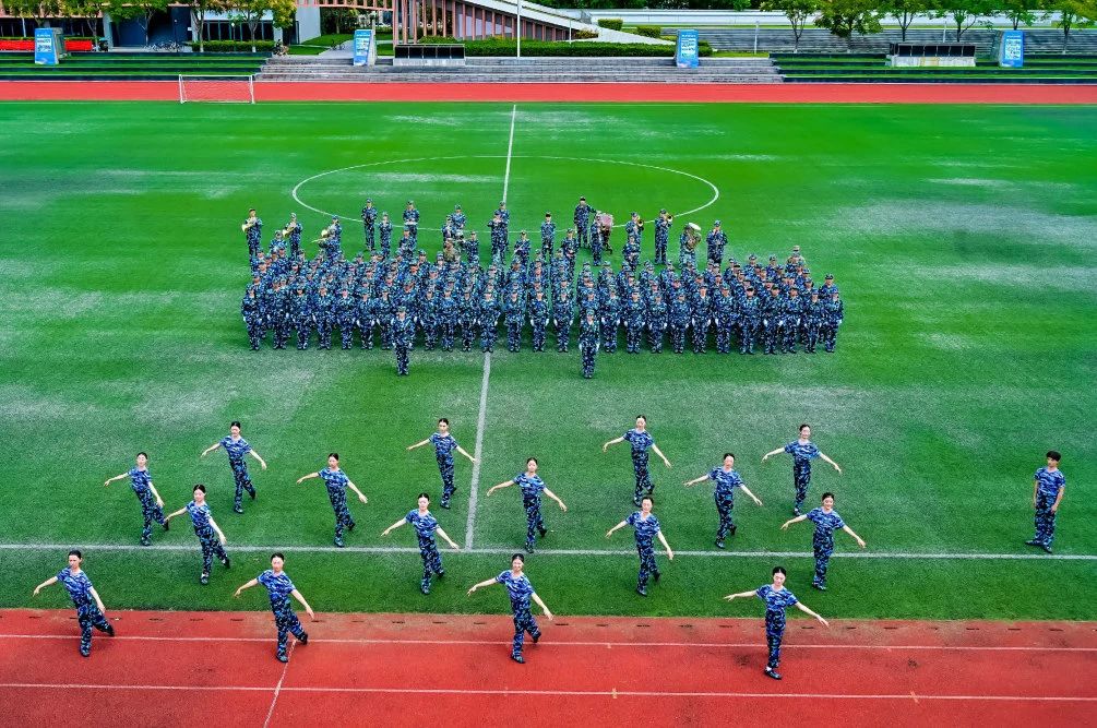 現(xiàn)場還進行了分列式及匯報表演,軍歌嘹亮響徹云霄,動作整齊彰顯錚錚鐵骨,充分展現(xiàn)了浙音學子朝氣蓬勃、斗志昂揚的時代新風貌。