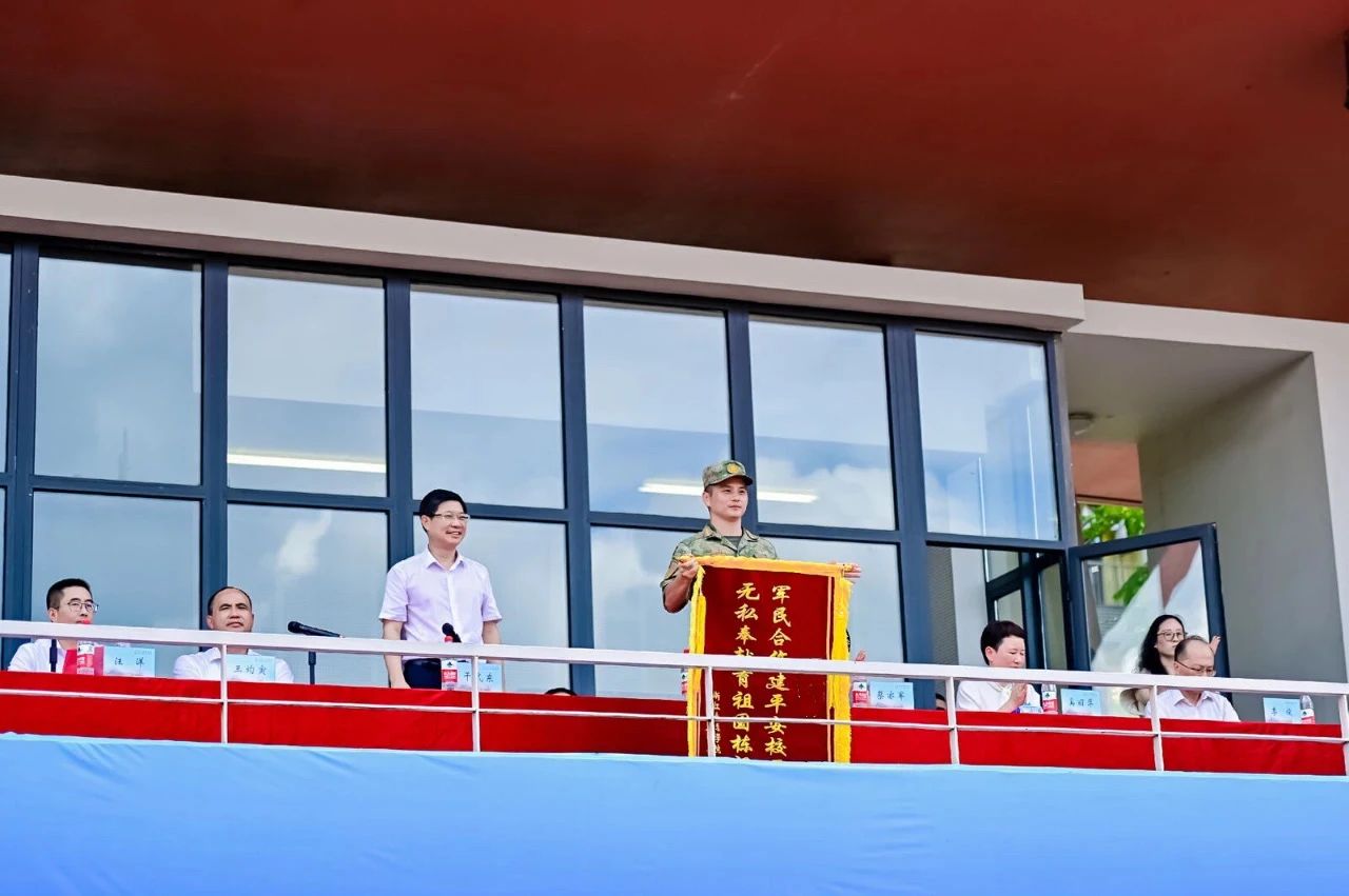 軍訓營營長張姚宣讀軍訓先進集體和先進個人表彰決定。與會領(lǐng)導為受表彰的代表頒發(fā)錦旗和榮譽證書并表示祝賀。