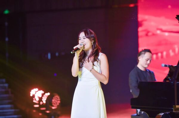 音樂會中,鋼琴系教師朱楣、徐潔以精湛技藝演繹了鋼琴四手聯(lián)彈《花兒為什么這樣紅》,音樂學系教師洪艷、音樂教育學院教師盧思嘉演唱的歌曲《阡陌江南》猶如一幅音符繪制的江南水墨畫,清澈嘹亮的嗓音將江南水鄉(xiāng)的秀美景色展現(xiàn)得淋漓盡致。流行音樂系教師王滔與馬來西亞留學生陳穎雯深情演唱歌曲《故鄉(xiāng)》,展現(xiàn)了全球華人血脈相連的真情實感。音樂會的尾聲,全體表演者與觀眾齊聲合唱《我愛你中國》,伴隨著悠揚的旋律,現(xiàn)場氣氛愈加熱烈,濃濃的愛國情懷在場內(nèi)激蕩。