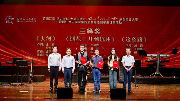 據(jù)悉,今年4月,浙江音樂學(xué)院在中共浙江省委宣傳部、浙江省文化廣電和旅游廳、浙江省文學(xué)藝術(shù)界聯(lián)合會的共同指導(dǎo)下,聯(lián)合安吉縣人民政府,組織開展“綠水青山·美麗中國”原創(chuàng)歌曲大賽暨浙江音樂學(xué)院第四屆主題原創(chuàng)歌曲征集活動。活動自發(fā)布以來共征集到510首主題原創(chuàng)歌曲,其中不乏知名詞作家、作曲家、音樂制作人的原創(chuàng)精品力作。經(jīng)過初評、復(fù)評兩個環(huán)節(jié),最終共20首歌曲進(jìn)入最后的現(xiàn)場決賽。主題原創(chuàng)歌曲《青綠中華》《路過江南》作為特別委約作品參與展演。