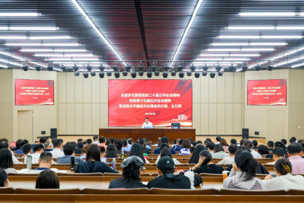 趙承圍繞“全面學(xué)習(xí)貫徹黨的二十屆三中全會精神和省委十五屆五次全會精神,勇當(dāng)高水平建設(shè)文化強(qiáng)省先行者、主力軍”主題,從“感悟改革之道、筑牢思想之基、塑造文化之魂、彰顯擔(dān)當(dāng)之力”四個方面,與學(xué)校師生進(jìn)行了深入交流。趙承強(qiáng)調(diào),黨的二十屆三中全會是在以中國式現(xiàn)代化全面推進(jìn)強(qiáng)國建設(shè)、民族偉大復(fù)興的關(guān)鍵時期召開的十分重要的會議,既是黨的十八屆三中全會以來全面深化改革的實踐續(xù)篇,也是新征程推進(jìn)中國式現(xiàn)代化的時代新篇。要從宏大主題、遠(yuǎn)大目標(biāo)、重大原則、龐大工程、強(qiáng)大保證等方面,準(zhǔn)確理解把握黨的二十屆三中全會精神。趙承從“一個戰(zhàn)略統(tǒng)領(lǐng)”、“三個再”“五個更”奮斗目標(biāo)、“7個高水平”、“14個攻堅突破”、“11個方面改革舉措”等方面,全面解讀了省委十五屆五次全會精神,要求學(xué)校師生深入理解進(jìn)一步全面深化改革、推進(jìn)中國式現(xiàn)代化省域先行的內(nèi)在邏輯和核心要義,切實把思想和行動統(tǒng)一到中央和省委決策部署上來。