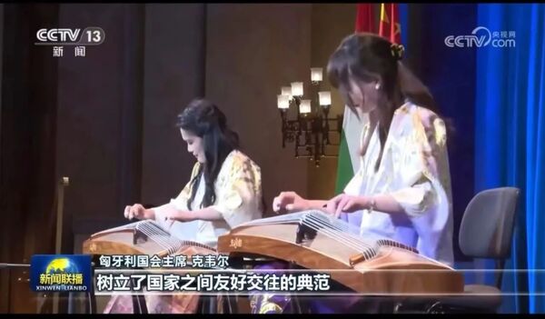 在中國(guó)駐匈牙利使館的慶祝中華人民共和國(guó)成立75周年暨中匈建交75周年招待會(huì)上,國(guó)樂系派匈牙利羅蘭大學(xué)交流學(xué)習(xí)學(xué)生薛晴瀅作為留學(xué)生和華僑代表演奏了古箏合奏《盛世國(guó)樂》,引得滿堂喝彩。童周瑜同學(xué)在布達(dá)佩斯中國(guó)文化中心現(xiàn)場(chǎng)設(shè)置的“非遺展示體驗(yàn)區(qū)”向國(guó)際友人傳播中國(guó)古琴音樂文化,與會(huì)賓客對(duì)中國(guó)傳統(tǒng)文化與科技創(chuàng)新贊嘆不已。