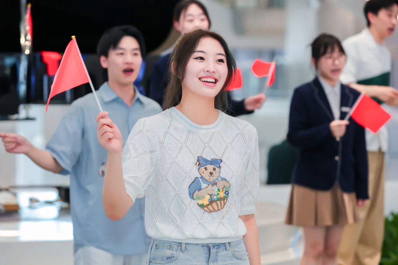 在蕭山機(jī)場(chǎng),浙音70余名“文藝輕騎兵”與冠軍健兒、省屬企業(yè)青年、現(xiàn)場(chǎng)游客一起,以歌曲快閃、花車管樂巡游、青春宣講等形式,為祖國(guó)慶生。殘奧會(huì)冠軍、中國(guó)首位國(guó)際殘奧委會(huì)運(yùn)動(dòng)員委員會(huì)委員譚玉嬌也參與到“文藝輕騎兵”的賦美活動(dòng)中,大家共唱《在希望的田野上》《祖國(guó)不會(huì)忘記》等曲目,旅客被熱烈歡慶的情緒深深感染。