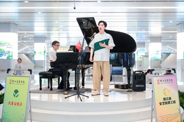 全省“文化浙江”建設(shè)十大工程M511光影匯國(guó)慶啟幕。當(dāng)天,民族室內(nèi)樂團(tuán)、Hangin人聲樂團(tuán)以“文藝輕騎兵”的形式,為M511光影匯的啟用增添了濃厚的文化氛圍。隨著悠揚(yáng)的《杭州味道》旋律響起,觀眾們仿佛穿越回了杭州的老街小巷,品味著這座城市獨(dú)有的韻味。