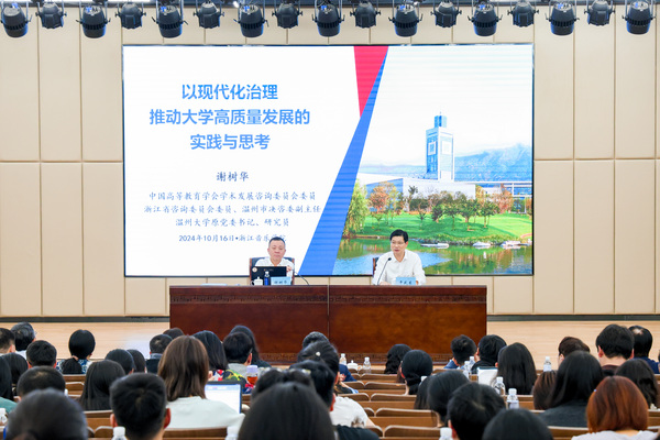會上,謝樹華結合學習黨的二十屆三中全會精神,以溫州大學發(fā)展的實踐經驗為引,用生動的語言和豐富的案例深入闡述了地方高校在以現代化治理推動高質量發(fā)展方面的經驗做法。他認為,面對新時代高等教育的挑戰(zhàn)與機遇,推動學校高質量發(fā)展需重點關注四個問題:一是要明確辦學定位,統(tǒng)領發(fā)展方向。定位決定方向,要根據辦學基礎、辦學現狀等因素,結合未來發(fā)展需要,確定自身在高等教育系統(tǒng)中的位置和跑道。二是要錨定奮斗目標,凝聚發(fā)展共識。目標決定未來,要科學設定發(fā)展目標,以目標為引領,發(fā)揮目標管理的指向、凝聚、整合、檢驗、激勵等重要作用,提升辦學層次、鞏固辦學地位并打造鮮明的辦學特色。三要實施綜合改革,激發(fā)發(fā)展動力。改革決定動力,要按照“結構決定功能、人事決定動能、制度決定效能”的理念,大力推進高校機構、人事、制度三方面的系統(tǒng)改革,優(yōu)化資源配置。四要強化內涵建設,推動高質量發(fā)展。內涵決定高度,要落實立德樹人根本任務,堅持和加強黨的全面領導,落實黨委領導下的校長負責制,在學生教育、學科建設、社會服務、黨的建設等方面持續(xù)發(fā)力,實現多維度、全方位提升,真正為實現高質量發(fā)展奠定堅實基礎。