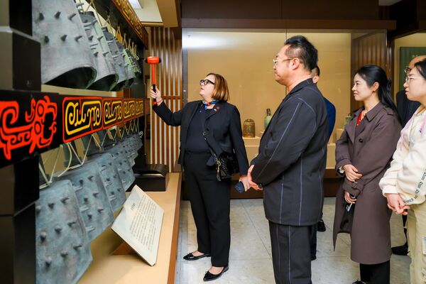 布什一行參觀了學(xué)院圖書(shū)館、音樂(lè)博物館、敦煌樂(lè)舞藝術(shù)展廳、施光南音樂(lè)藝術(shù)館。