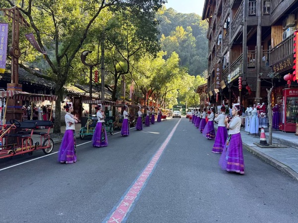 11月3日,研討團(tuán)隊(duì)赴景寧畬族自治縣大均鄉(xiāng)開展采風(fēng)調(diào)研,深入體驗(yàn)了體育文化、婚嫁習(xí)俗、畬族山歌、畬族刺繡及彩帶編織等多項(xiàng)文化交流活動,并在景寧山哈大劇院欣賞了畬族歌舞新作《畬秀·千年山哈》。