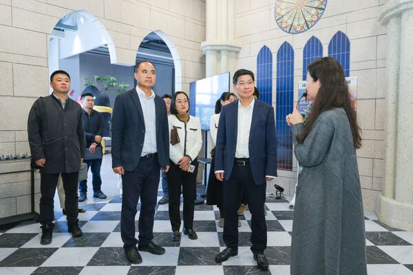 簽約儀式前,干武東一行參觀考察了M511光影匯8K多功能沉浸探索空間《深空未來》、VR體驗項目《永恒的巴黎圣母院》、環(huán)境音樂劇《茶無此人》、未來影城以及古建與非遺特展、歷史經典產業(yè)傳承創(chuàng)新主題展等。