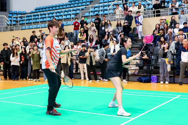 最后,冠軍為浙江音樂學院第二屆羽毛球比賽開賽,并現(xiàn)場與學生互動,進行羽毛球教學指導、切磋技藝。