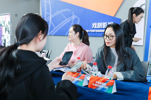為精準化落實高質(zhì)量充分就業(yè),學校實施“將招聘會開在舞臺上”的重要舉措,本次招聘會的一大亮點就是設置“戲劇專場招聘會”。擁有四個表演專業(yè)的戲劇系,主動邀請30余家省內(nèi)外專業(yè)院團現(xiàn)場觀看、現(xiàn)場選聘人才,實現(xiàn)沉浸式雙選。此外,戲劇系還專門設計了《2025屆畢業(yè)生推介手冊》,直觀、全面地展示了戲劇系畢業(yè)生的形象、專業(yè)和特長,受到了用人單位的一致好評。