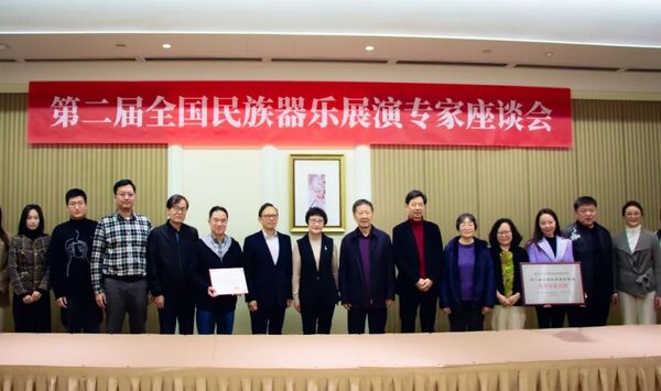 專家代表為浙音民族樂隊學(xué)院頒發(fā)“優(yōu)秀民族樂團”證書和牌匾。
