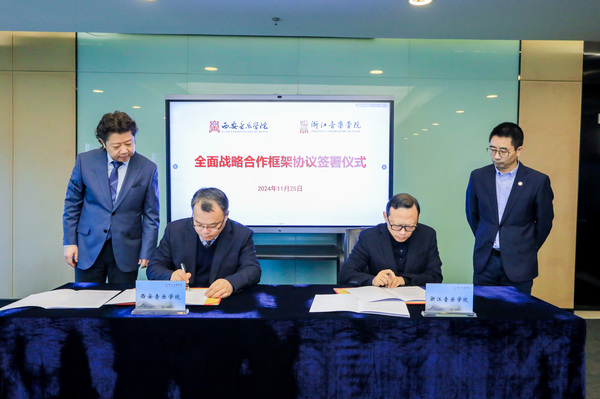 11月25日上午,浙江音樂學院與西安音樂學院戰(zhàn)略合作協(xié)議簽約儀式在行政樓1004舉行。院長王瑞,副院長汪洋,黨委委員、宣傳部部長、教師工作部部長施瑩,西安音樂學院院長王剛、副院長陳勇等出席。