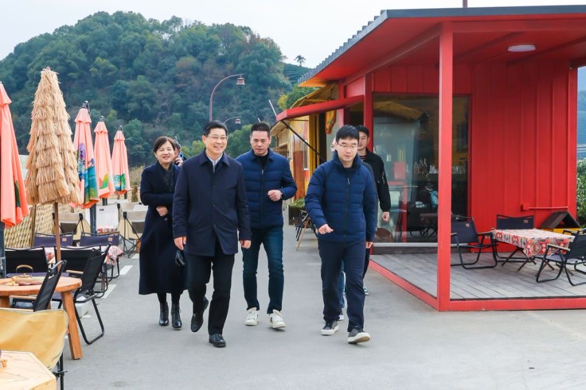 在何家村,干武東一行實(shí)地走訪了文化禮堂、康樂(lè)驛站、共富市集等特色文化場(chǎng)所,全面了解何家村“藝術(shù)村長(zhǎng)”項(xiàng)目開(kāi)展情況,近距離體驗(yàn)了“藝術(shù)村長(zhǎng)”劉福洋老師的現(xiàn)場(chǎng)教學(xué)并召開(kāi)座談會(huì),詳細(xì)了解聯(lián)村共建和“藝術(shù)村長(zhǎng)”工作情況。