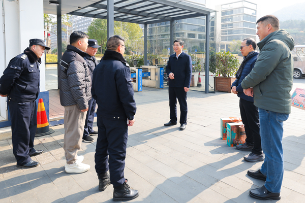 校領(lǐng)導(dǎo)一行走訪了行政樓監(jiān)控室、體育館高壓配電房、東門崗?fù)?、?guó)際交流中心、學(xué)生公寓6號(hào)樓值班室、教工食堂等校內(nèi)多個(gè)重要區(qū)域。在行政樓監(jiān)控室,校領(lǐng)導(dǎo)詳細(xì)了解校園安全監(jiān)控系統(tǒng)的運(yùn)作情況;在東門崗?fù)?,校領(lǐng)導(dǎo)強(qiáng)調(diào)校園安全的重要性,并囑咐工作人員保重身體、站好每一班崗;在學(xué)生公寓,校領(lǐng)導(dǎo)向公寓管理人員致以新春的祝福,并特別提醒他們?cè)诩倨谝訌?qiáng)安全管理,緊繃安全這根“弦”;在教工食堂,校領(lǐng)導(dǎo)對(duì)食堂員工的辛勤付出給予充分認(rèn)可,并希望他們?cè)谛碌囊荒昀锬芾^續(xù)為全校師生提供高品質(zhì)的餐飲服務(wù)。