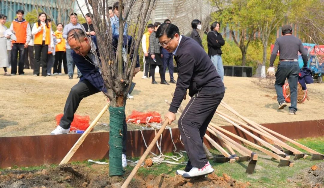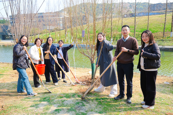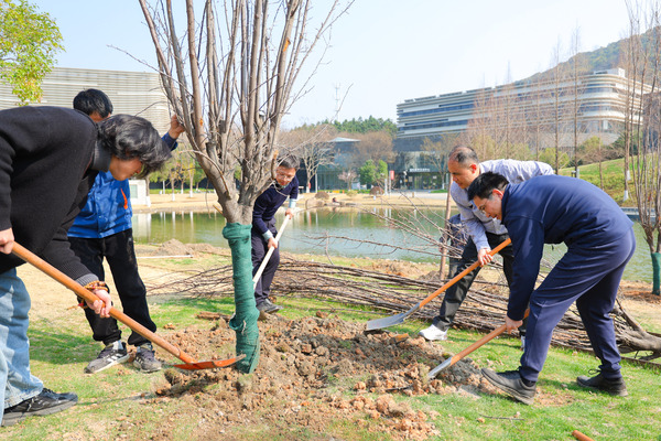 三月的風拂過山麓,泥土翻涌著早春的芬芳。3月11日下午,恰逢第47個植樹節(jié)來臨之際,浙江音樂學院學生勞動教育實踐基地揭牌暨“校友林”植樹活動啟幕。在學院黨政領導班子成員干武東、王均寅、蔡亦軍、奚麗萍、李波、李俊、施瑩的帶領下,師生共同開展植樹活動,在校園譜寫出綿延的綠色樂章。