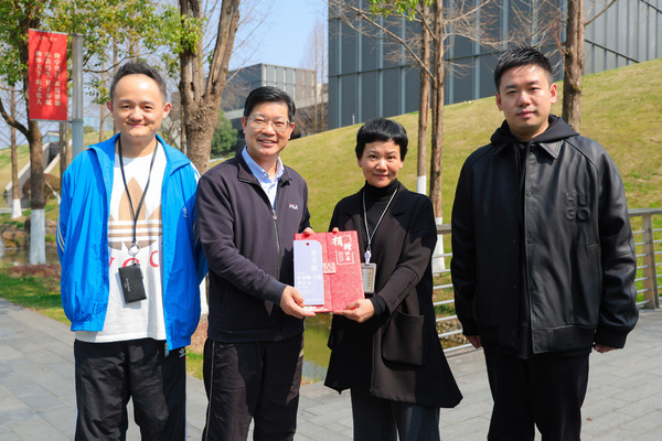 在植樹節(jié)來臨之際,學院啟動了“音夢同根,綠韻留痕——我為浙音種棵樹”認捐認養(yǎng)“校友林”計劃。計劃啟動以來,在校師生與來自五湖四海的校友們紛紛認捐。當天,多位校友代表重返校園,共執(zhí)春鋤。黨委書記干武東向他們頒發(fā)了認捐認養(yǎng)證書與紀念牌。