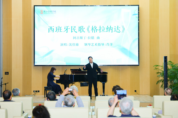 在教學實踐演出環(huán)節(jié),來賓們觀看了由國樂系、聲樂歌劇系、管弦系等師生表演的民樂合奏《喜相逢》《我的祖國》、歌曲《摘棉花》《格拉納達》、弦樂與鋼琴《燈火里的中國》等節(jié)目。活動現(xiàn)場氣氛熱烈、掌聲雷動,師生的精彩表演得到來賓們的高度肯定。