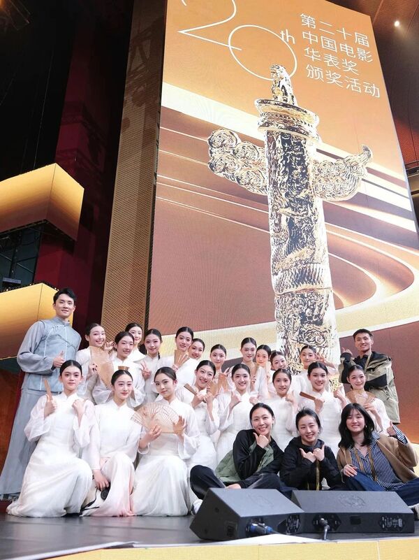以扇舞繪江南雅韻,以光影敘百年匠心。4月27日晚,第二十屆中國電影華表獎頒獎典禮在山東省青島市舉行,舞蹈學(xué)院原創(chuàng)舞劇《一扇百年》選段《光影匠心》受邀作為現(xiàn)場表演節(jié)目登上華表獎頒獎舞臺。