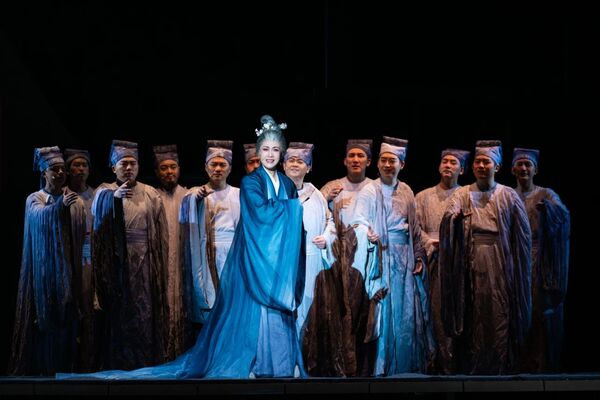 觀眾們聽見,浙江音樂學(xué)院室內(nèi)管弦樂團(tuán)、民族室內(nèi)樂團(tuán)、樂隊學(xué)院、交響樂團(tuán)、管弦系和國樂系學(xué)生共同演奏的音樂,在序曲、幕間及曲結(jié)尾處的轟鳴,讓歌者的吟唱在道白處娓娓追隨,古琴、琵琶、竹笛等樂器的特殊音色,不時從樂隊里跳出,點綴重要段落,又能適時返回,完美融入樂隊之間。