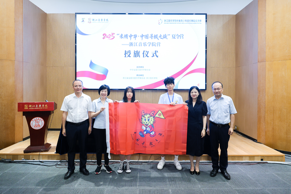 莊莉萍、蔡亦軍共同為2025“親情中華·中國尋根之旅”夏令營——浙江音樂學(xué)院營授旗,正式宣布開營。