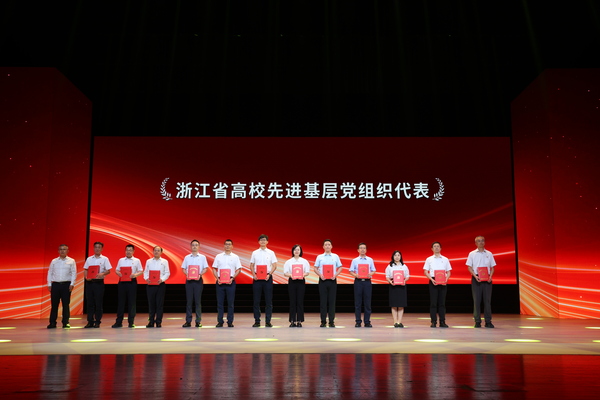 王鋼為浙江省高校先進(jìn)基層黨組織代表頒發(fā)證書。