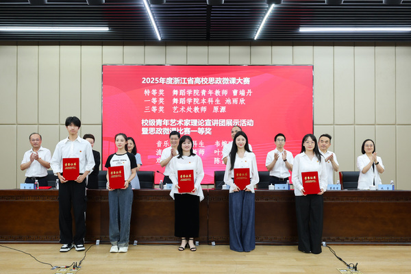 為2025年度浙江省高校思政微課大賽獲獎(jiǎng)?wù)?、校?jí)青年藝術(shù)家理論宣講團(tuán)展示活動(dòng)暨思政微課比賽一等獎(jiǎng)獲得者頒獎(jiǎng)