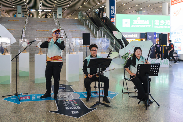 “我們想讓國樂走出劇場,在城市公共空間里綻放青春活力。” 參加此次活動的國樂系“文藝輕騎兵”表示。這是一次與上城區(qū)團區(qū)委、杭州東站樞紐合作的“站小青”品牌項目生動展示?,F(xiàn)場,二胡、笛子的悠揚樂聲,與書畫創(chuàng)作相得益彰,這場聽覺藝術(shù)與視覺藝術(shù)的聯(lián)動,將 “江南憶,最憶是杭州”的美好印象深深刻在過往行人的心中。不少旅客掏出手機記錄,還有小朋友好奇地湊近,仔細打量這些傳統(tǒng)樂器。“原本趕車的疲憊,被這場快閃治愈了。”一位乘客在朋友圈分享道。