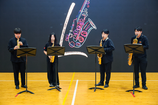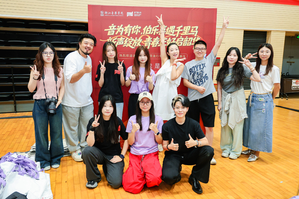 與此同時,學(xué)校還為新生及家長獻(xiàn)上了一場別開生面的“迎新快閃”:銅管五重奏《歡慶》鏗鏘嘹亮、軍事科目表演《倒功》颯爽挺拔、朗誦《可愛的中國》深情涌動、新生原唱《因為相信所以看見》清澈真摯、嗩吶《好漢歌》豪情激蕩,交互視聽表演《緣因·弦起》科技藝術(shù)交融……不僅營造了熱烈的迎新氛圍,更閃耀著浙音人的才情與溫度。