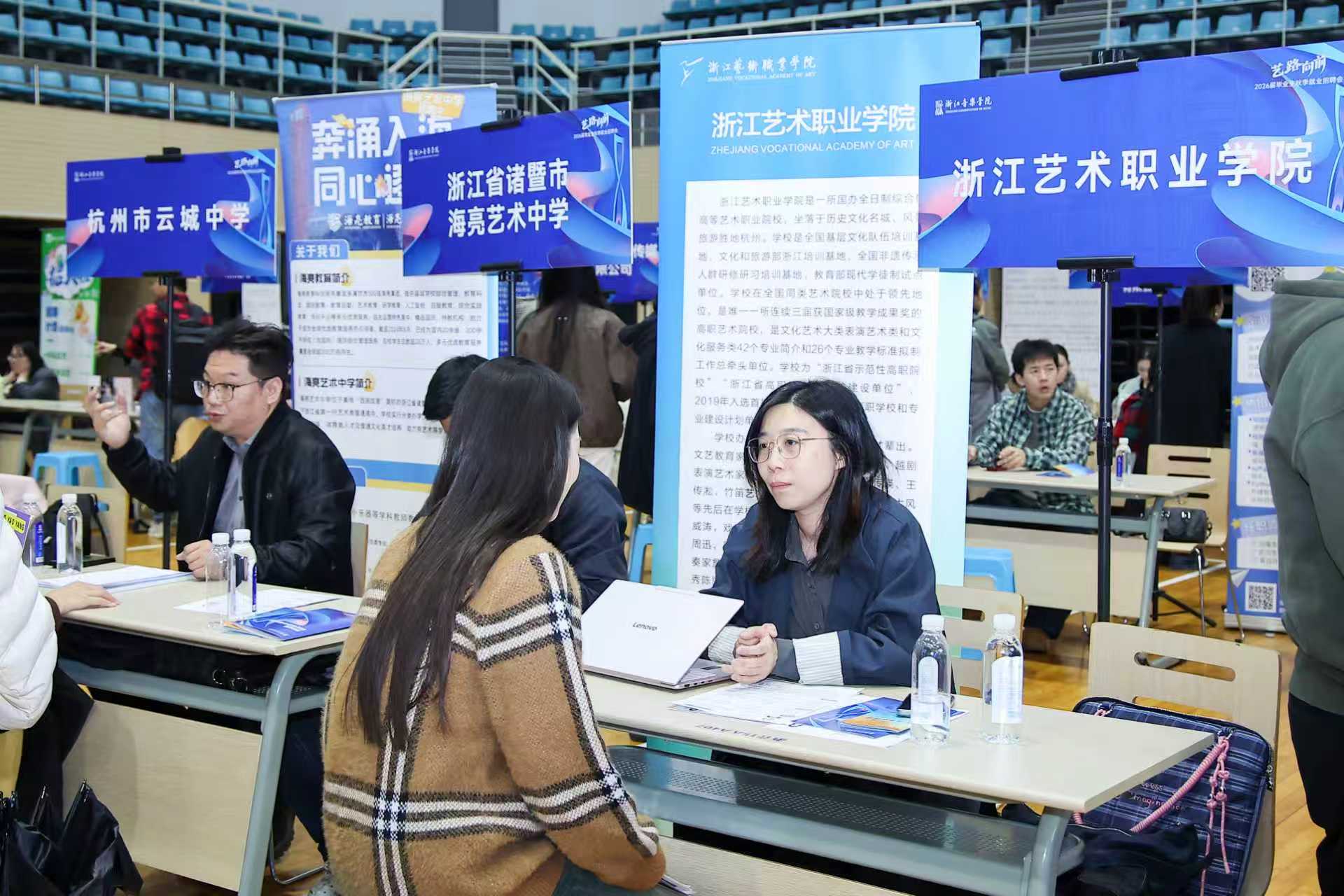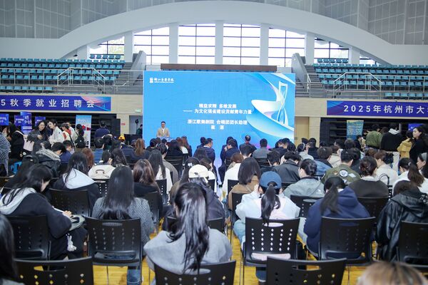 梧桐葉落,秋意正濃,11月12日下午,由浙江音樂學院和杭州市就業(yè)管理服務中心聯(lián)合主辦的“藝路向前”浙江音樂學院2026屆畢業(yè)生秋季招聘會主場活動在學院籃球館舉行。