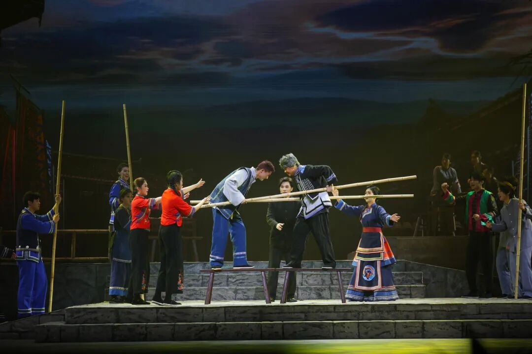 更令人動(dòng)容的是,主創(chuàng)團(tuán)隊(duì)將畬族“鳳凰圖騰”的文化意象貫穿全劇——從畬族古老的“盤瓠”始祖?zhèn)髡f,到服飾上精美絕倫的刺繡圖案;從“鳳凰涅槃”歌謠中蘊(yùn)含的堅(jiān)韌意象,到當(dāng)?shù)乩葮蛩笳鞯?ldquo;同心共濟(jì)”精神,這些文化符號(hào)的巧妙運(yùn)用,使整部作品既扎根傳統(tǒng),又具有國(guó)際化的藝術(shù)表達(dá)。