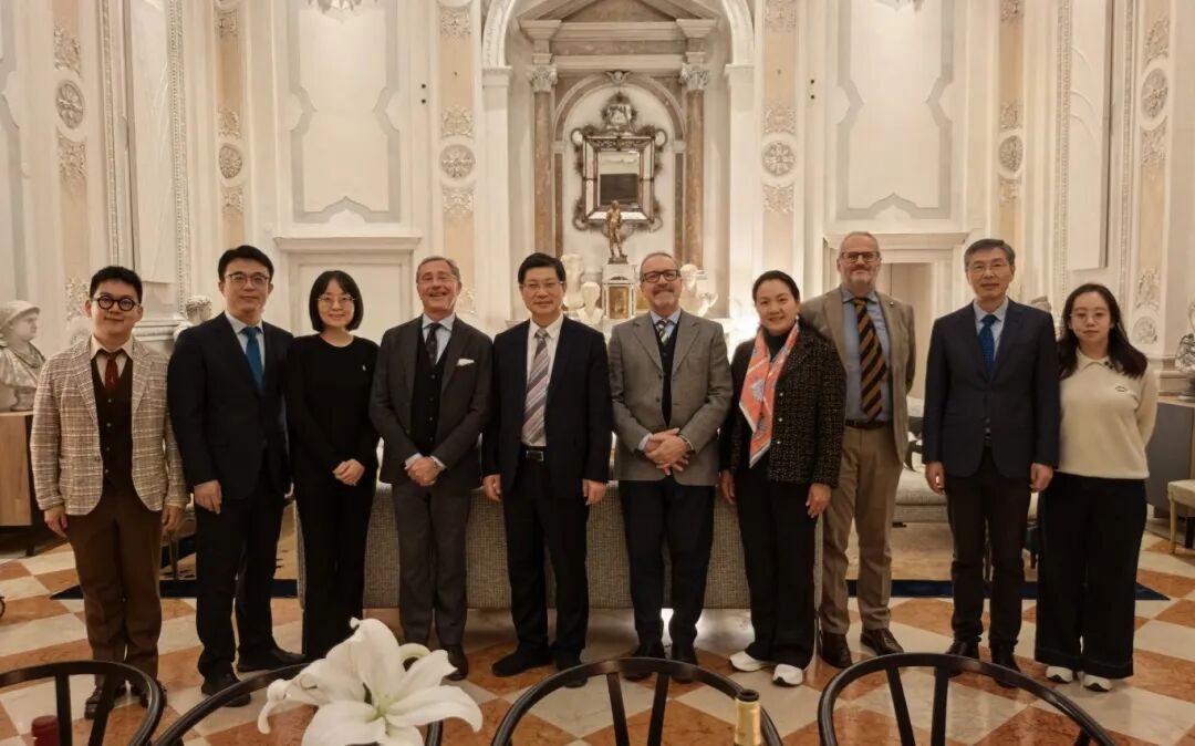 在威尼斯音樂學院訪問期間,雙方交流了兩國教育體系的各自優(yōu)勢,認為在音樂教育理念和人才培養(yǎng)目標上有著諸多共通之處,期望就聯(lián)合培養(yǎng)博士等領域開展具體合作。法比奧·莫雷蒂主席熱情邀請浙江音樂學院派代表團參加該校150年校慶活動,希望通過精彩節(jié)目的展示,進一步增進兩校的深入交流,擴大浙音在歐洲的影響力。干武東表示,加強藝術交流、師生互訪等領域的合作有助于促進兩校的學術交流與文化互鑒,進一步拓寬國際視野。期間,代表團在莫雷蒂主席陪同下參觀了學校,并觀看了獲獎學生音樂會。